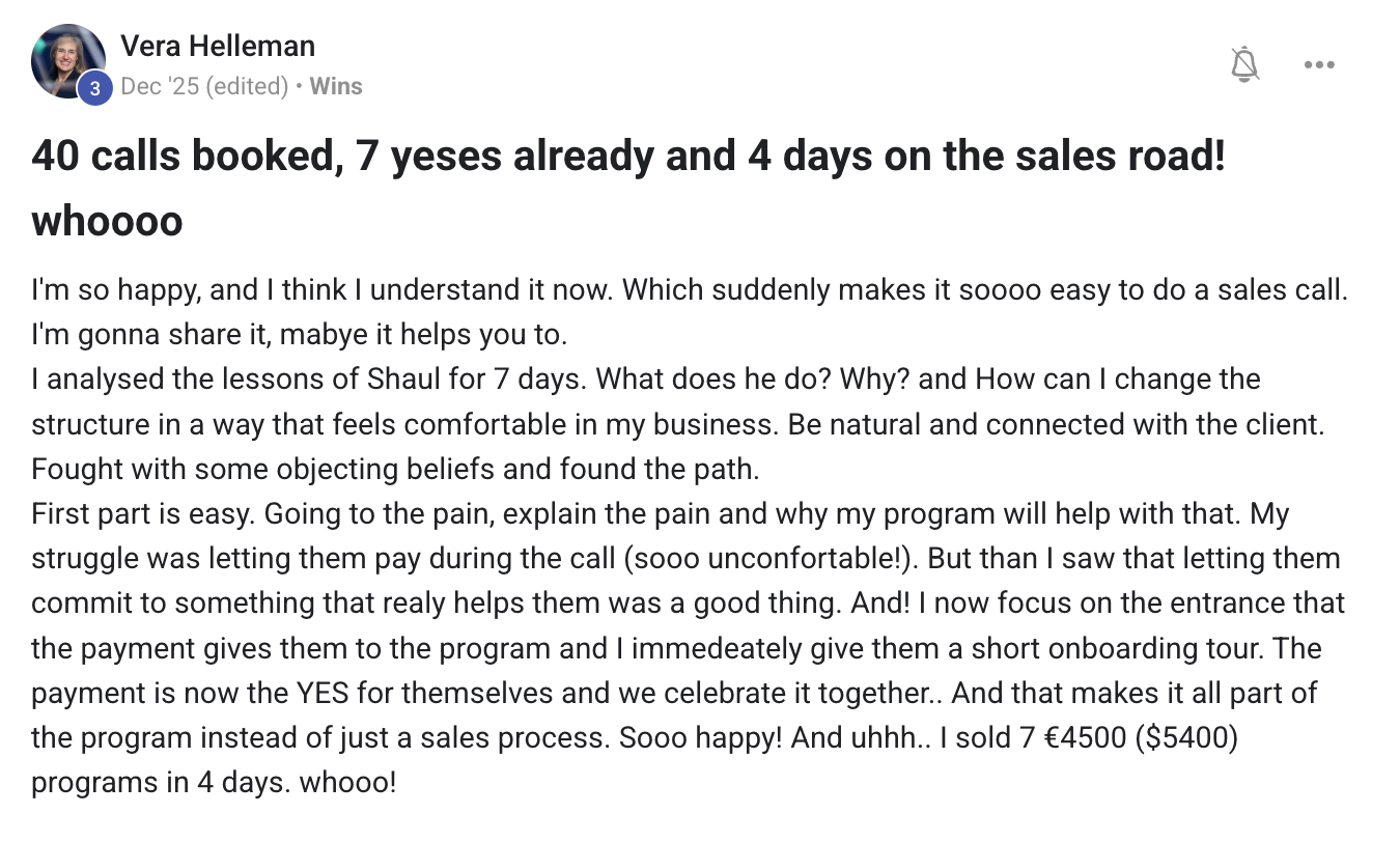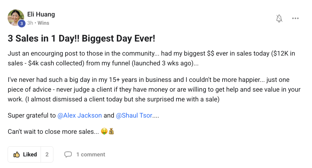 "My coaching program is now 7 months old and I rounded off last month just under $50k cash collected"